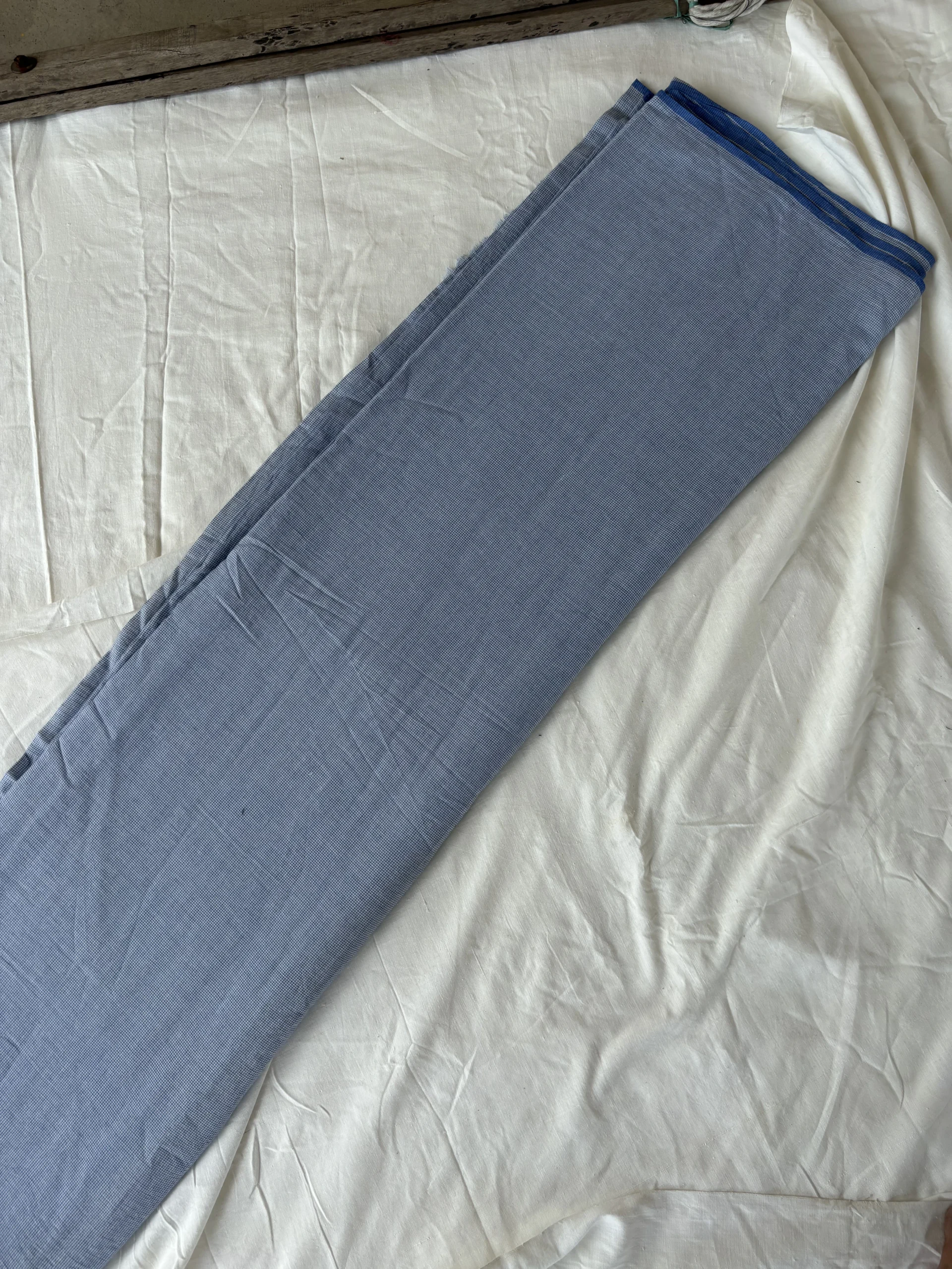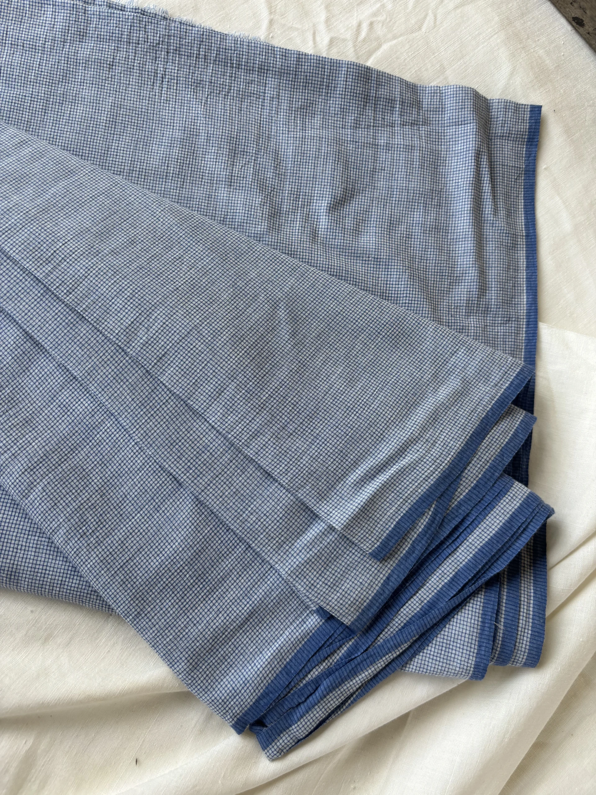 handwoven blue cotton check fabric